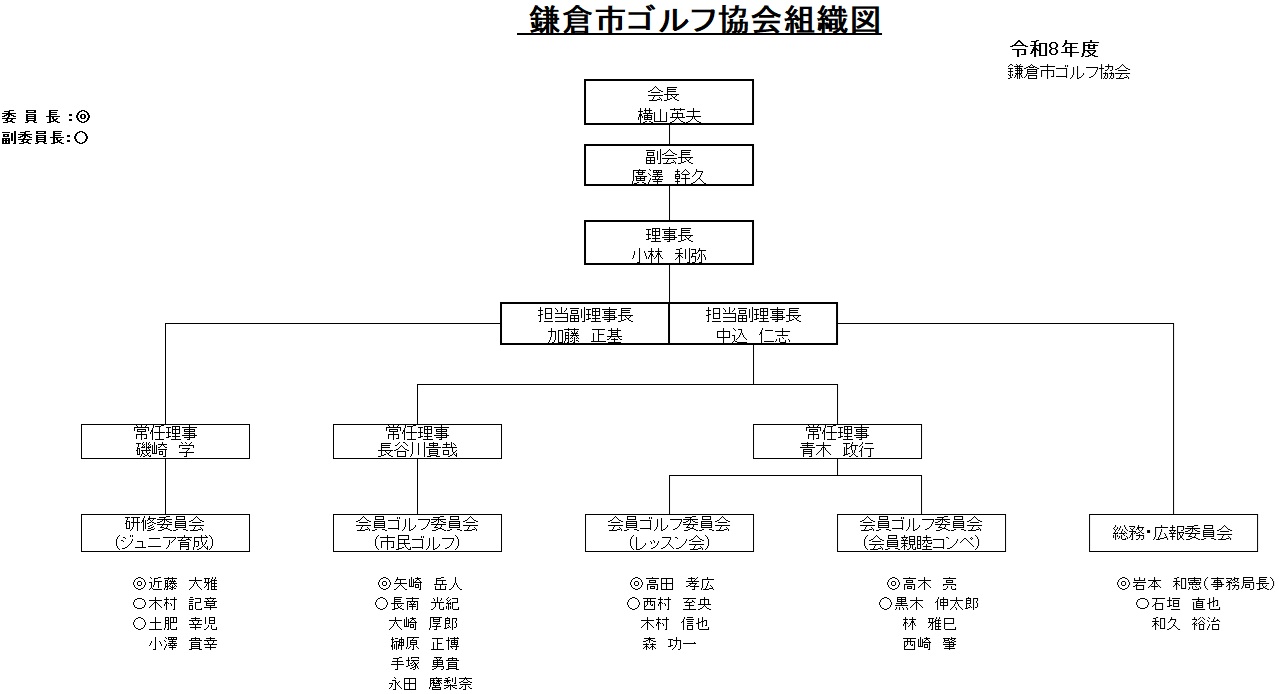 鎌倉市ゴルフ協会 役員名簿・委員会組織図 (令和8年3月1日現在)